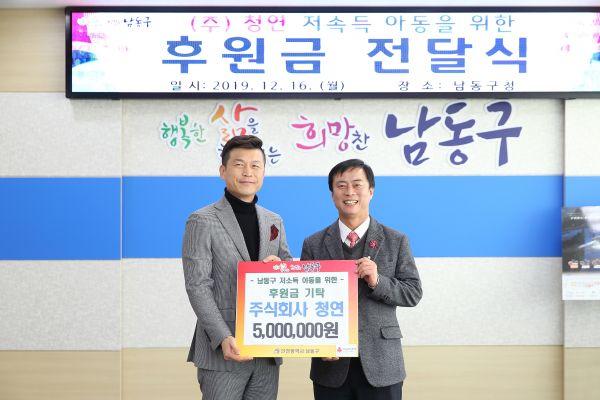 남동구가 지난 16일 ㈜청연으로부터 형편이 어려운 저소득 아동을 위한 후원금 500만원을 기탁 받았다.