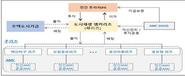 도시재생에 모자형 구조 리츠를 활용하기 위해 ‘도시재생 앵커리츠’를 도입한다. 도시재생사업 지원 대상을 확대하고 탄력적인 기금운용과 전문 인력을 활용한 사업 발굴로 도시재생사업이 더욱 활성화될 것으로 기대된다.