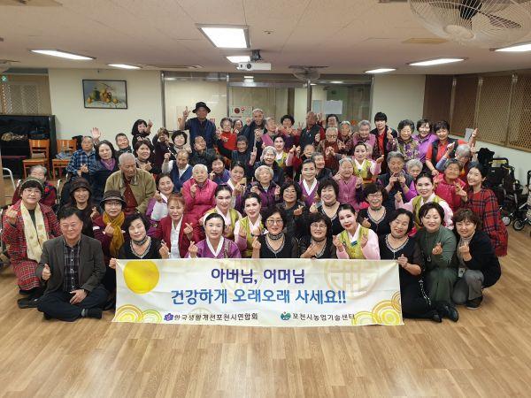 한국생활개선포천시연합회는 지난 17일 가산면 금현리 효담양로원을 찾아 어르신 50여명을 모시고 흥겨운 우리가락 문화공연을 펼쳤다.