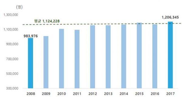 지난 10년간 손상으로 입원한 환자 수는 지속적으로 증가했고 평균 연간 112만 4228명, 한 달 9만 3686명, 하루 3080명을 차지했다.