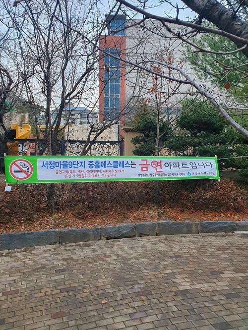 덕양구 제10호 금연아파트로 지정된 서정마을 9단지 중흥에스클래스는 6개월 동안의 금연지도점검 계도 및 홍보기간을 거친 후, 지정된 금연구역에서 흡연시 5만원의 과태료도 부과할 수 있게 됐다.