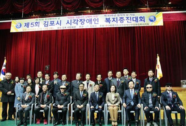 경기도시각장애인연합회 김포시지회는 ‘제40회 흰 지팡이 날’과 ‘제93주년 점자의 날’을 맞아 지난 12일 정하영 김포시장, 신명순 김포시의회의장, 홍철호 국회의원, 김두관 국회의원 등 내외빈과 시각장애인, 자원봉사자 등 300여명이 참석한 가운데 김포시민회관에서 ‘제5회 김포시 시각장애인 복지증진대회’를 개최했다.