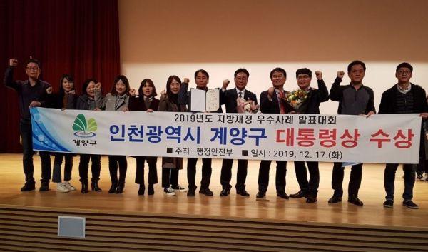 인천 계양구는 지난 17일 행정안전부, 서울신문사, 한국지방재정공제회가 공동 주관한 ‘2019년 지방재정개혁 우수사례 발표대회’에서 최우수상인 대통령상을 수상하고 재정인센티브로 교부세 2억 5천만원을 받았다.