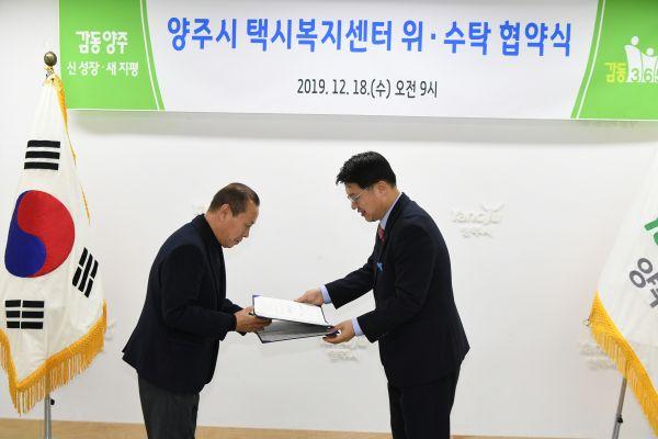 양주시는 18일 경기도 개인택시 운송사업조합 양주시조합과 ‘양주시 택시복지센터 위·수탁 협약식’을 가졌다고 밝혔다.