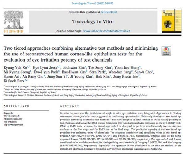 이번 연구는 평가방법과 결과에 대한 과학적 우수성을 인정받아 독성시험법 분야에 있어 국제적으로 저명한 전문학술지인 ‘Toxic-ology in vitro’에 게재됐다.