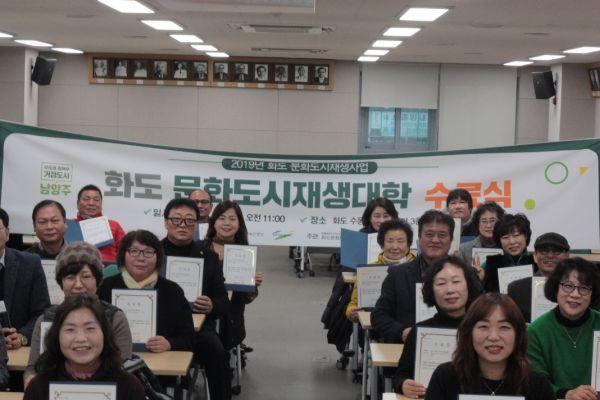 남양주시는 문화체육관광부 주관 2019 문화적 도시재생사업의 일환으로 ‘화도문화도시재생대학’을 운영하고 지난 17일 화도·수동행정복지센터에서 수료식을 가졌다.