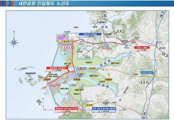 국토부 사전타당성조사 용역 결과에 따르면, 새만금항 인입철도는 현재 건설 중인 새만금 신항에서 대야역까지 화물과 여객을 수송하는 용도로 건설할 계획이라고 전했다.