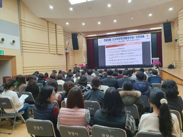 광명시는 지난 18일 광명시청 대회의실에서 공무원 350여명을 대상으로 긴급지원 신고의무자 교육을 실시했다.