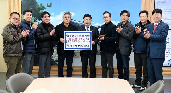 광주시대리점협의회 류민하 회장 일행은 19일 광주시를 방문해 어려운 이웃에게 전달해 달라며 생필품 30품목을 전달했다.