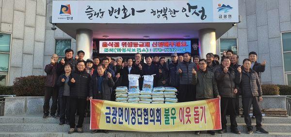 안성시 금광면 이장단협의회는 지난 18일 관내 저소득층을 위해 이웃돕기물품 쌀10kg, 40포를 면사무소에 기탁했다.