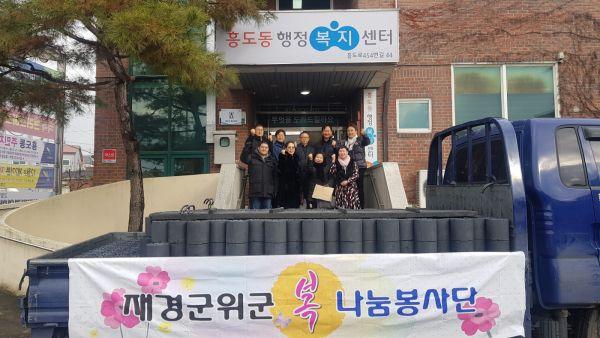 겨울철 난방비 부담으로 어려워하는 취약 가구를 위해 지난 17일 재경군위군 복나눔봉사단에서 취약계층 10가구에 총 3,000장의 연탄을 지원했다.
