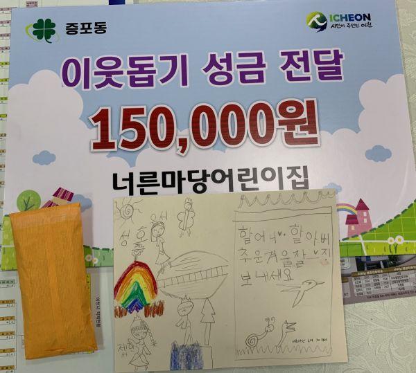 이천시 안흥동에 위치한 너른마당 어린이집은 지난 17일 증포동 관내에 거주하는 어려운 이웃을 위해 써달라며 15만원의 성금을 기탁했다.