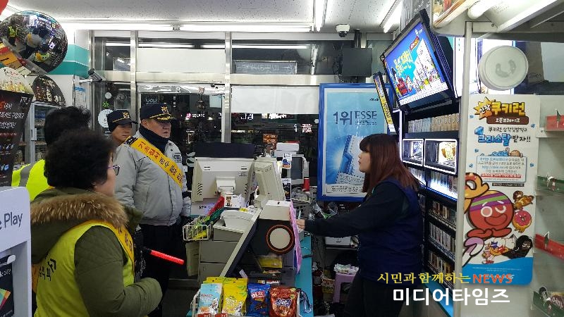 | 연말연시를 맞아 주민과함께하는 공동체 치안 활동을 하고있다. <ⓒ미디어타임즈> |