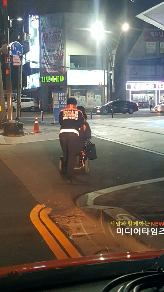 [미디어타임즈=문상수 기자] 눈이 내려 더욱 추운 겨울날 전동휠체어가 방전돼 난감한 상황에 빠진 한 장애인을 적극 도운 소방대원이 지역사회에 훈훈함을 전했다.인천서부소방서(서장 김준태) 정서진119구조대 3부 이건우 소방교와 김용수 소방교는 지난 28(수)일 저녁 8시27분경 전동휠체어 방전으로 노상에서 오갈 수 없는 상황에 처해 있던 장애인 A씨를 안전하게 귀가하도록 조치했다.A씨의 신고를 받고 출동한 두 소방대원은 무게가 무려 110kg인 전동휠체어를 손수 밀어 600m 떨어진 A씨 자택 안까지 옮겨 무사히 귀가시켜주는 선행으로 추운 겨울, 서부소방의 ‘따뜻한 정성구조 ․ 감동돌봄’이 빛을 발하게 하였다.김용수 소방교는 "몸이 불편한 장애인이셔서 추운 날 더욱 더 고통스러우셨을텐데 너무 안타까워 제 가족을 모신다는 마음으로 임했다"며 "올 겨울 이런 일이 혹시라도 또 발생하실까봐 걱정된다"고 말했다.또한 함께한 이건우 소방교는 "앞으로도 시민의 안전과 불편해소를 위해 앞장서 최선을 다하겠다"는 포부를 밝혔다.