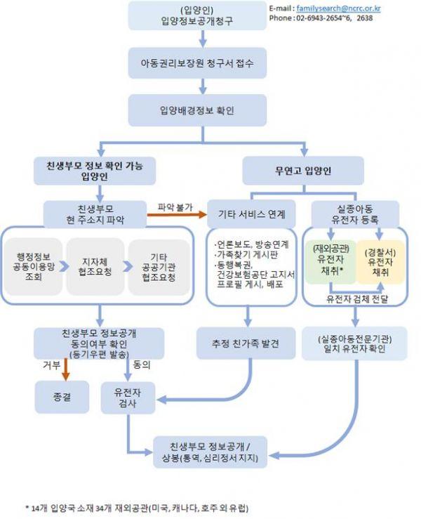가족찾기를 원하는 해외입양인은 아동권리보장원에‘입양정보공개청구’를 신청해야 하며 이를 통해 친부모 정보가 남아있지 않다는 ‘확인서’를 받은 경우 14개 해외입양국 소재 34개 재외공관에서 사전 예약을 통해 유전자 검사를 받을 수 있다.
