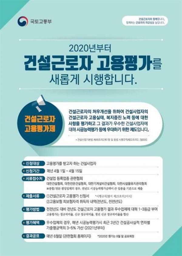고용평가제는 근로자 고용실태, 복지증진 노력 등을 평가해 우수한 기업에게 등급을 부여하는 제도로 고용안전성이 낮고 근무환경이 열악한 건설 일자리 상황을 개선하는 건설사업자의 자발적인 노력을 유도하기 위해 도입됐다.