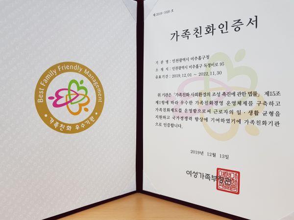 인천 미추홀구는 지난 18일 여성가족부로부터 가족친화기관으로 재인증을 받았다고 19일 밝혔다.