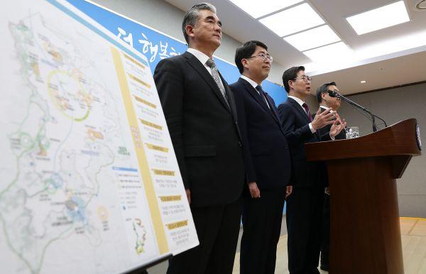 양승조 지사는 19일 도청 브리핑룸에서 맹정호 서산시장, 가세로 태안군수 등과 기자회견을 열고 ‘가로림만 해양정원 조성 사업’이 최근 열린 기획재정부 재정사업평가 자문회의에서 예비타당성조사 대상에 최종 선정됐다고 밝혔다.