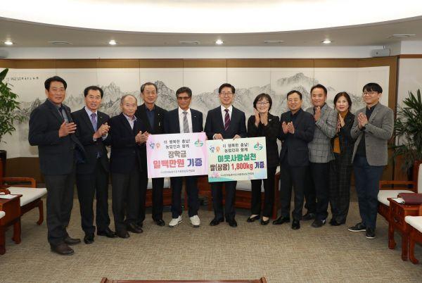 양승조 충남도지사는 19일 도청 외부인사접견실에서 농촌지도자회 충남도연합회로부터 ‘사랑의 쌀 및 장학금’을 전달받았다.