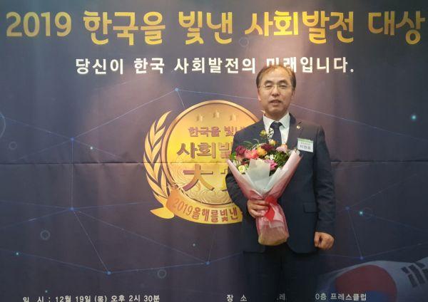 경기도의회 문화체육관광위원회 이원웅 의원이 19일 한국프레스센터에서 개최된 “2019 한국을 빛낸 사회발전 대상”을 수상했다.