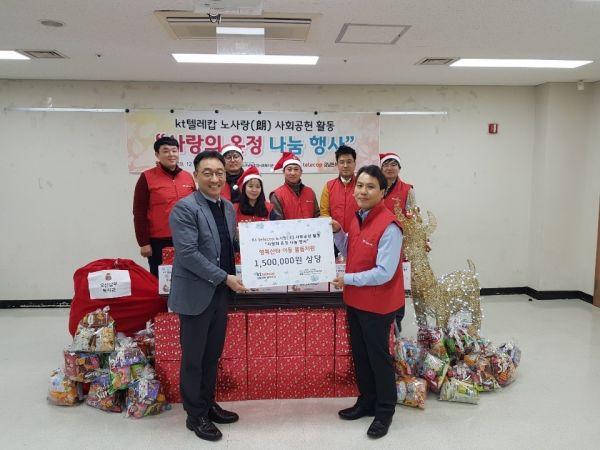 오산남부종합사회복지관은 19일 kt텔레캅 강남본부 남부지사와 함께 kt텔레캅 노사랑 사회공헌 활동 ‘사랑의 온정 나눔’행사를 진행했다.