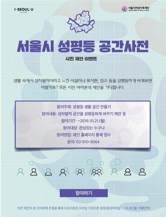 한편 재단은 ‘서울시 성평등 공간사전’ 시민제안 결과 중 우선 개선 가능한 대상을 선정, 서울여성플라자 내 성평등 시범공간을 조성하고 있다.