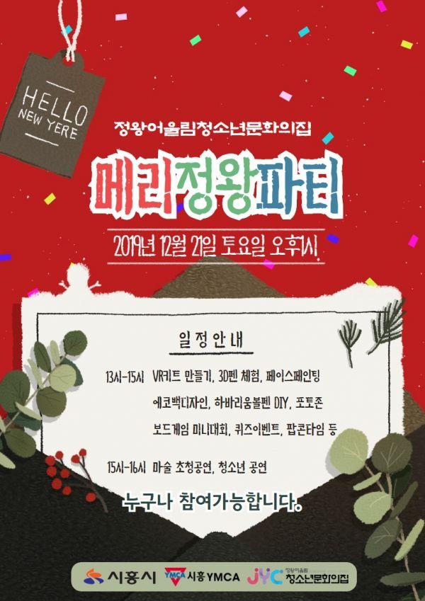 시흥시 어울림청소년문화의집은 오는 12월 21일 청소년이라면 누구나 참여 가능한 2019년 연말파티 ‘메리정왕파티’를 개최한다.