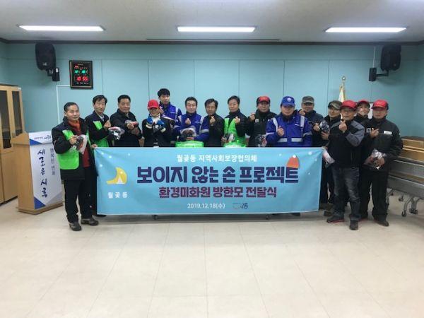 월곶동 달인마을 지역사회보장협의체 위원들은 지난 18일 시흥시 월곶동행정복지센터 회의실에서 월곶동 관내 환경을 담당해주시는 환경미화원 47분께 방한모를 전달했다.