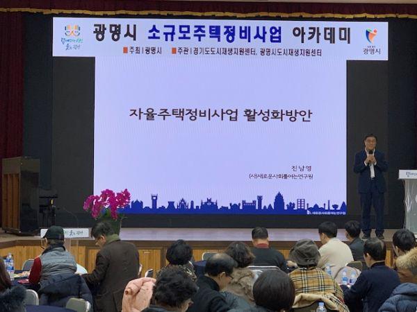 광명시 도시재생지원센터와 경기도 도시재생지원센터가 공동으로 주관한 이번 아카데미에서는 자율주택정비사업과 가로주택정비사업을 소개하고 공공기관 참여를 통한 사업지원방안을 설명하는 시간을 가졌다.
