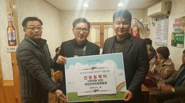 이날 전달한 전동휠체어는 오승택 주민자치위원이, 쌀은 평인식 주민자치 위원이 각각 기부했다.