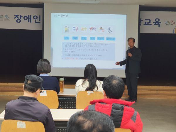 부천시는 지난 17일 시청 소통마당에서 장애인 단체장 및 종사자 30여명이 참석한 가운데 장애인 인식개선 및 성폭력 예방을 위한 교육을 실시했다.