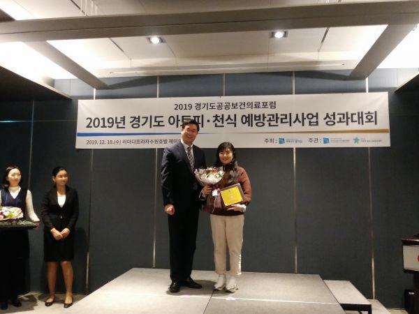 부천시 소사보건소가 지난 18일 수원 라마다호텔에서 열린 2019년 경기도 공공보건의료 포럼 및 통합성과대회에서 ‘2019년 아토피·천식 예방관리사업 평가부문 우수기관’으로 선정되어 도지사 표창을 받았다.