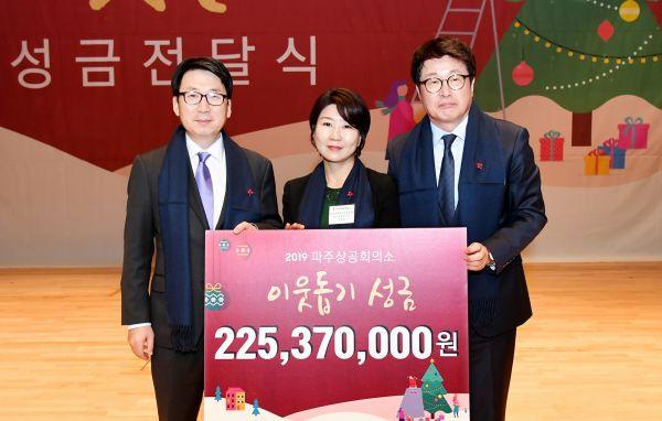 파주상공회의소는 이웃돕기성금으로 역대 최고 금액인 2억2천537만원을 파주시에 전달했다.