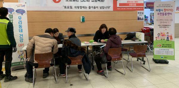 의왕시 무한돌봄센터는 지난 19일 내손1동 주민센터 복지팀과 함께 내손동에 소재한 롯데마트에서 위기가구 발굴 및 상담을 위한‘찾아가는 무한돌봄센터’를 운영했다.