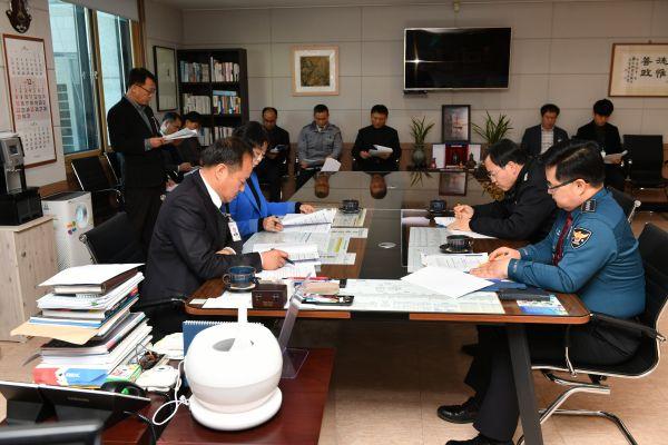 특히 지난 10월 롯데마트 앞 교통사고 이후 마트 앞 교차로 개선을 통해 교통사고 위험은 크게 감소하였으나 교통법규위반 차량이 증가하는 등 추가 개선이 요구됨에 따라 무인단속장비를 설치하는 등 교통환경을 개선해 나가기로 했으며 보이스피싱 등 사기범죄, 농한기 서민침해범죄, 선거범죄 예방 등을 위해 전 기관이 관심을 기울여 줄 것을 당부했다.