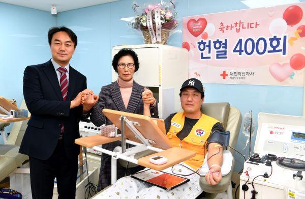 이번 기념식에는 김상호 하남시장과 대한적십자사 봉사회 하남지구 회장 및‘초록하남’봉사자들이 함께 참석해 400회 헌혈의 성과를 축하했다.