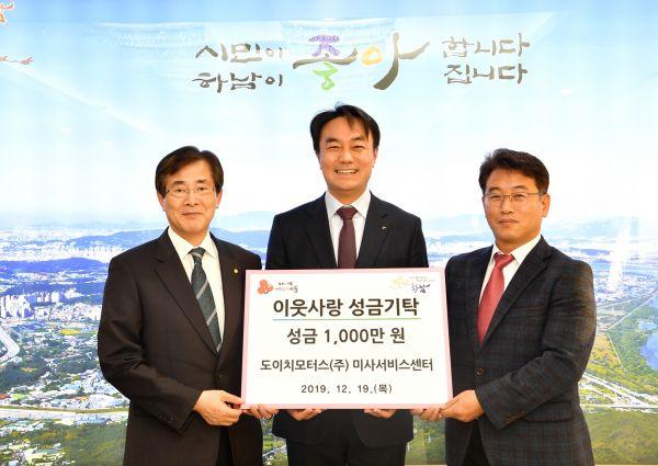 이날 기탁식에는 김상호 하남시장을 비롯해 황해송 도이치모터스㈜ 부사장, 원중재 미사서비스센터 지점장 등 관계자들이 참석했다.