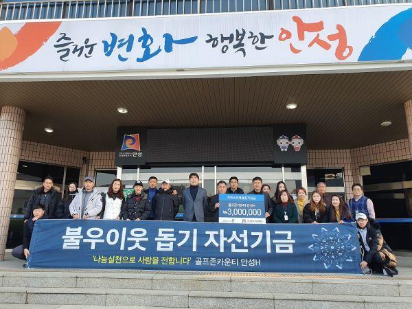 안성시 보개면 북가현리에 소재한 골프존카운티 안성H 임직원 20여명은 20일 ‘따뜻한 겨울나기’ 행사 후원금 300만원을 보개면지역사회보장협의체에 전달했다.