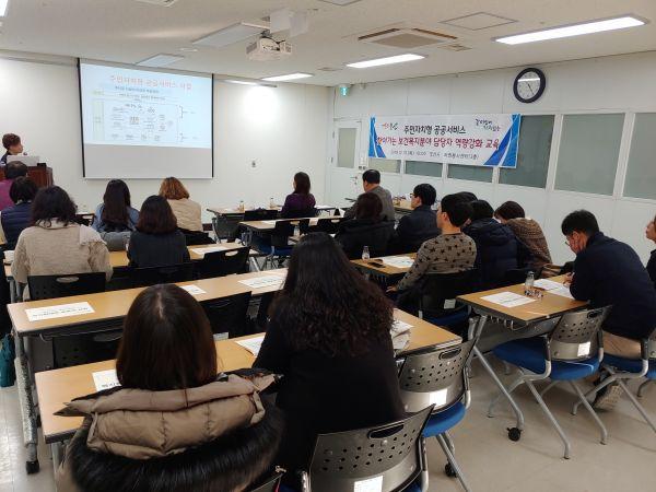 교육은 웰펌 정현경 강사를 초빙해 주민자치형 공공서비스 찾아가는 보건·복지 분야의 개념과 지역문제해결에 필요한 자원 발굴 및 개발을 공공기관 운영자 중심으로 강의를 진행했다.
