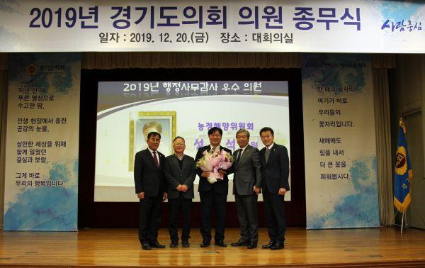 경기도의회 농정해양위원회 성수석 의원은 20일 경기도의회 대회의실에서 열린 의원 종무식에서 탁월한 의정활동과 내실 있는 감사활동에 대한 공로를 인정받아 19년도 행정사무감사 우수의원상을 수상했다.