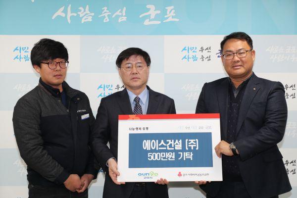 군포시는 지난 20일 ㈜에이스건설로부터 500만원의 후원금을 전달받았다.
