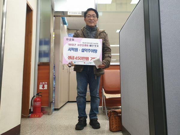 설악추어탕의 이름으로 13년째 성금을 기부하고 있었으며 2018년 11월에 서락원을 개업, 서락원 업체명으로 올해 성금을 기탁하게 됐다.