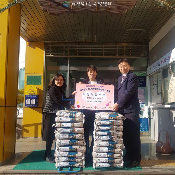 의정부향우회는 지난 20일 2019년 100일간 사랑릴레이 배턴 잇기 운동에 동참하고자 50만원 상당의 쌀 10kg 20포를 의정부1동 주민센터에 기탁했다.