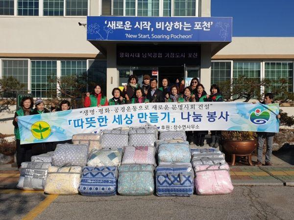 새마을부녀회는 아프리카돼지열병 방역을 지원하면서 받은 임금으로 겨울이불을 구입하고 창수면에 기탁했다.