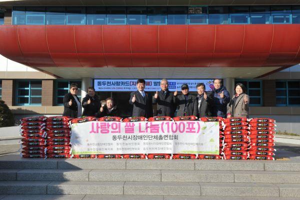 동두천시 장애인단체총연합회은 지난 19일 지역사회의 어려운 이웃을 위해 백미 1,000kg을 동두천시에 기탁했다.