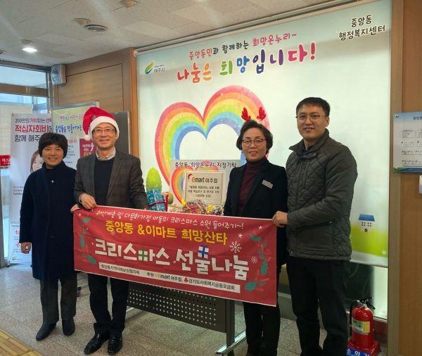 중앙동지역사회보장협의체은 지난 19일 이마트 여주점으로부터 취약계층 아동 선물 세트를 기탁 받고 전달식을 가졌다고 전했다.