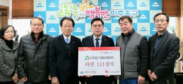 미추홀구정화조협의회는 라면 111상자를 구청에 기탁했다.