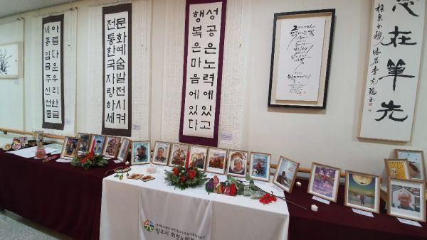 뿐만 아니라 행사장 로비에는 사군자, 한글, 서예, 사진 등의 작품전시와 더불어 복지관 특화사업 ‘어깨동무’ 프로그램으로 어르신과 시각장애인의 합작품인 스트링아트까지 함께 선보여 다양한 볼거리를 제공했다.