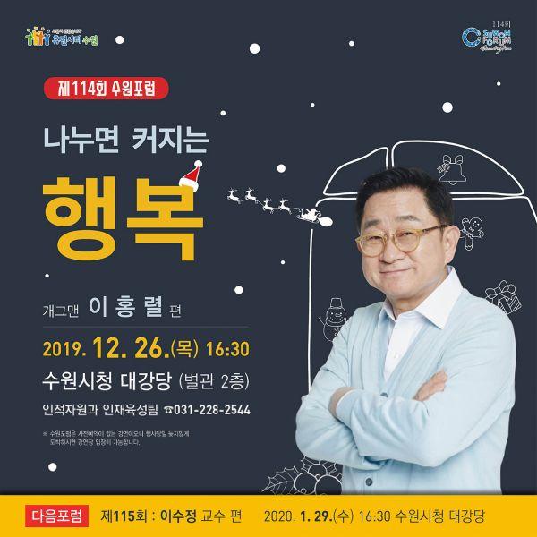 개그맨 이홍렬씨, 26일 수원시청에서 열리는 제114회 수원 포럼에서 강사로 나서