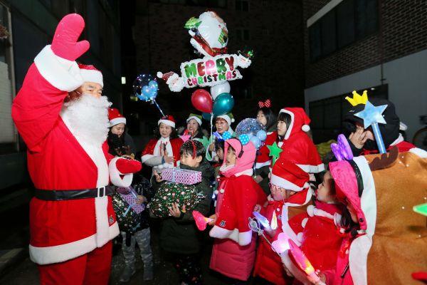 갑작스런 산타의 등장에 놀란 어린이들이 다함께 캐롤을 따라부르며 즐거운 율동을 선보이자 백 시장도 따뜻한 격려로 화답했다.